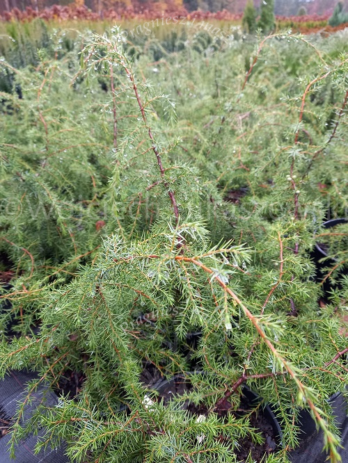 Jałowiec Oblonga Pendula - Juniperus communis (pojemnik C3) jest to już bardzo stara, ale wciąż ogromnie popularna i bardzo chętnie sadzona odmiana jałowca pospolitego o niespotykanych, fantazyjnych kształtach. Ciekawą formę roślina zawdzięcza ułożeniu pędów, które początkowo są wyprostowane, później zaś delikatnie, falami opadają ku ziemi, co wygląda niezwykle malowniczo i widowiskowo. Czasem całość sprawia wrażenie jak gdyby ktoś specjalnie wyrzeźbił na drzewie fale, pagórki i wyżłobienia. Igły, którymi pokryte są gałęzie, są bardzo liczne, kłujące, do 2 cm długości, wiosną i latem są intensywnie jasnozielone, jesienią i zimą lekko brązowieją. Dorasta do 3-4 m wysokości.