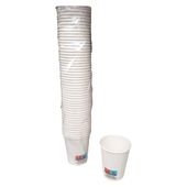 Jednorazowe papierowe kubki 200ml 50 szt. białe. Towar powystawowy, outletowy, stoki magazynowe. Urządzenia mogą posiadać opakowania zastępcze lub oryginalne. • 50 szt. Wysokiej jakości kubek do gorących i zimnych napojów, biały, 200 ml, wysokość 9 cm, średnica 7 cm. • Nadaje się do napojów do maksymalnie 90°C i maksymalnie 10% zawartości alkoholu. • Neutralny wygląd – dlatego idealnie nadaje się do zimnych i gorących napojów wszelkiego rodzaju. • Z nadrukowaną wskazówką dotyczącą utylizacji zgodnie z aktualnymi rozporządzeniami UE. Produkt przeznaczony do styczności z żywnością (wg deklaracją zgodności UE