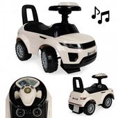 Jeździk dla dzieci w formie białego autka to świetna zabawka dla najmłodszych, łącząca zabawę z nauką. Wyposażony w multimedialną kierownicę, autko emituje dźwięki, które dodatkowo zainteresują maluchy, wspomagając rozwój ich umiejętności motorycznych.