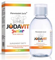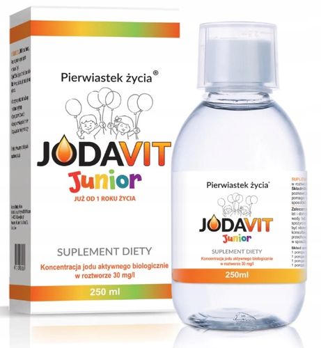 Jodavit Junior to innowacyjny płynny suplement diety bogaty w jod - kluczowy pierwiastek dla prawidłowego rozwoju psychicznego, ruchowego oraz metabolizmu. Unikalna formuła na wodzie artezyjskiej zapewnia czystość i brak posmaku.