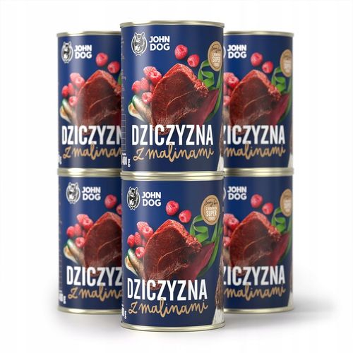 John Dog Berry Line Dziczyzna z malinami to wyjątkowa, w 100% naturalna karma mokra, pozbawiona zbóż, sztucznych barwników i konserwantów. Bogata w antyoksydanty, minerały oraz jod, ta wysokiej jakości karma zapewnia Twojemu psu odpowiednie odżywienie i wspomaga jego zdrowie.