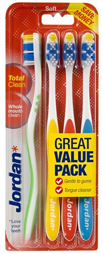 Szczoteczka przeznaczona do higieny całej jamy ustnej.Dzięki odpowiedniemu rozmieszczeniu włosia doskonale czyści zęby i przestrzenie międzyzębowe.Specjalna guma umieszczona na główce oczyszcza także język i wewnętrzną stronę policzków z osadów.Włosie miękkie.Wersja familijna.W jednym opakowaniu 4szt.