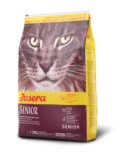 Josera Senior to karma stworzona specjalnie na potrzeby kotów cierpiących na problemy z nerkami, a w szczególności tych z niewydolnością narządu, jak również dla tych będących już w podeszłym wieku. Dla takich kotów ważne jest, aby pokarm był lekkostrawny i wysoko przyswajalny. Karma wolna jest od różnego rodzaju sztucznych barwników, konserwantów składająca się z wysokowartościowych, zdrowych i naturalnych składników Składniki użyte przy produkcji karmy wpływają na skórę i sierść kotów. Karma pozbawiona jest składników z potencjałem alergennym.