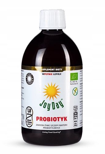 Joy Day bio Probiotyk to wysokiej jakości produkt zawierający żywe szczepy bakterii probiotycznych pozyskiwane w procesie fermentacji. Jego unikalna formuła wzbogacona witaminami, minerałami, kwasami organicznymi, enzymami, antyoksydantami oraz związkami antyseptycznymi, wspomaga równowagę flory bakteryjnej i zapewnia optymalną pracę układu trawiennego.