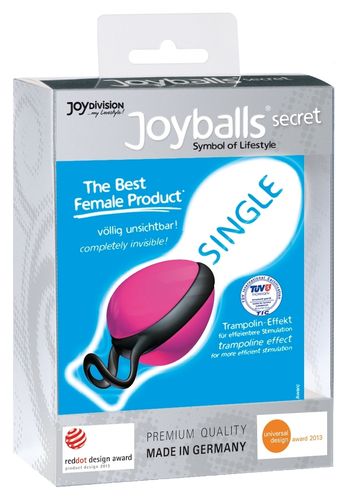 Joyballs Secret Single to najdyskretniejsza na świecie pojedyncza kulka gejszy od JoyDivision. Tytuł ten został jej przyznany dzięki zastosowaniu opatentowanej technologii, która sprawia, że jest cicha jak szept, a także dyskretnego, krótkiego i pozostającego wewnątrz pochwy uchwytu, który ułatwia jej wyjmowanie. Joyballs Secret Single jest dostępna w estetycznym, nowoczesnym dizajnie i różnych wersjach kolorystycznych. Podczas jesj aplikacji polecamy wykorzystywanie wyłącznie lubrykantów na bazie wody, gdyż inne mogą spowodować ich uszkodzenie. Dobrym wyborem będzie żel AQUAglide lub BIOglide od JoyDivision.