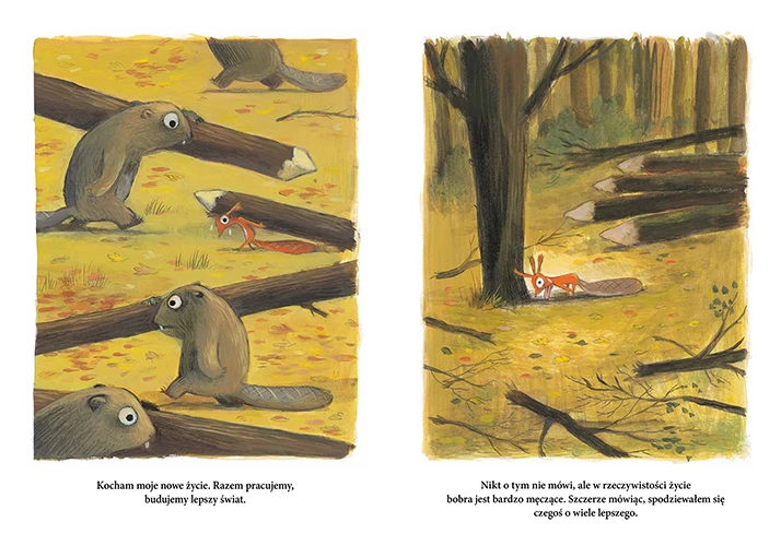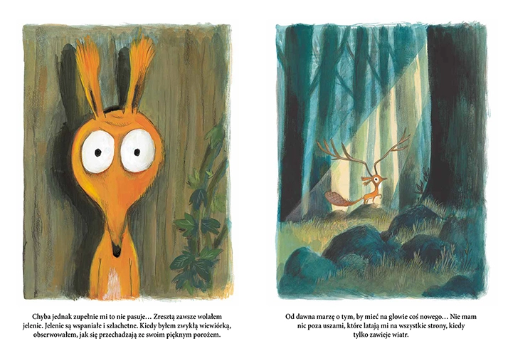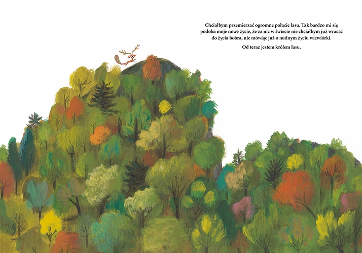 Wiewiórka już nie chce być wiewiórką. Życie bobra, jelenia lub jeża jest z pewnością ciekawsze. Olivier Tallec spełnia wszystkie zachcianki chimerycznego zwierzątka i pozwala mu zaznać życia w innej skórze. Urocza i dowcipna opowieść dla przekornych, którzy wierzą, że gdzie indziej trawa jest bardziej zielona. Kontynuacja serii o wiewiórce znanej z książek To jest moje drzewo i Trochę dużo.