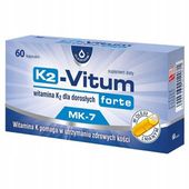 K2-Vitum forte to preparat zawierający naturalną witaminę K2 - menachinon-7 (MK-7), otrzymywaną w procesie biofermentacji z udziałem mikroorganizmów Bacillus subtilis natto. Witamina K2 odgrywa kluczową rolę w utrzymaniu zdrowych kości, wspierając równowagę pomiędzy procesami przebudowy tkanki kostnej.