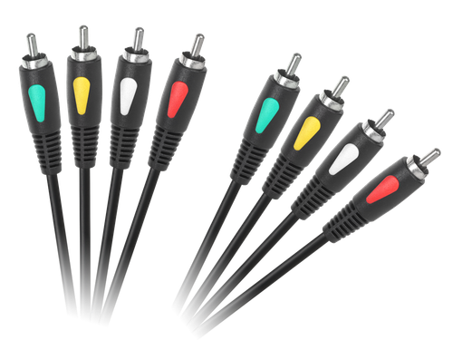 Kabel, zakończony z obu stron czterema wtykami RCA, służy do przesyłania sygnału audio-video. Wysoka jakość materiałów, z jakich jest on wykonany, daje gwarancję przesyłania sygnału bez żadnych zakłóceń oraz zapewnia długą żywotność przewodu. Kabel jest zgodny z normami określonymi w polskich i międzynarodowych standardach.