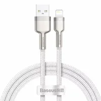Producent Baseus Nazwa Cafule Series Metal Data Cable USB to IP Model CALJK-A02 Materiał Stop cynku + pleciony nylon Kolor Biały Prędkość transmisji 480 MB/s Długość 1 m Natężenie 2,4 A