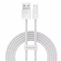 Producent Baseus Model CALD000502 Rodzaj USB do Lightning Materiał ABS + oplot o wysokiej gęstości Natężenie Do 2,4 A Prędkość transmisji Do 480 Mbps Długość 2 m Kolor Biały