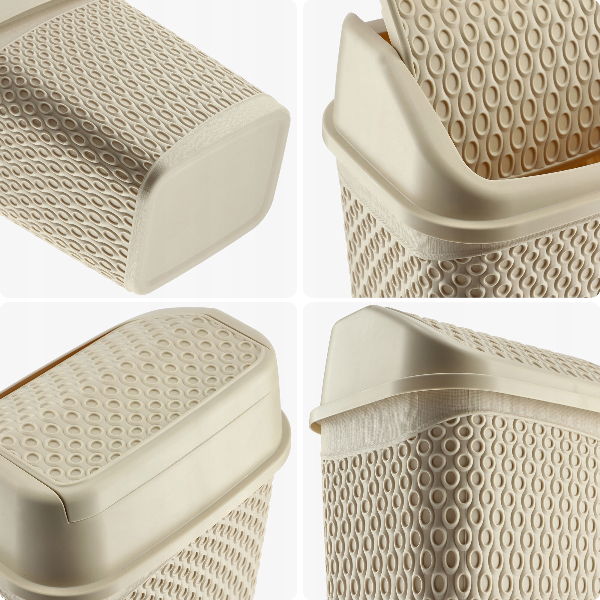 KADAX Kosz na Śmieci Łazienkowy Beżowy 6,2L Uchylny Pojemnik to idealne rozwiązanie dla każdego, kto pragnie utrzymać porządek w swoim wnętrzu, jednocześnie nie rezygnując z elegancji i stylu. Ten dekoracyjny kosz na śmieci został zaprojektowany z myślą o różnorodnych pomieszczeniach, takich jak łazienka, kuchnia czy biuro, gdzie estetyka łączy się z funkcjonalnością.