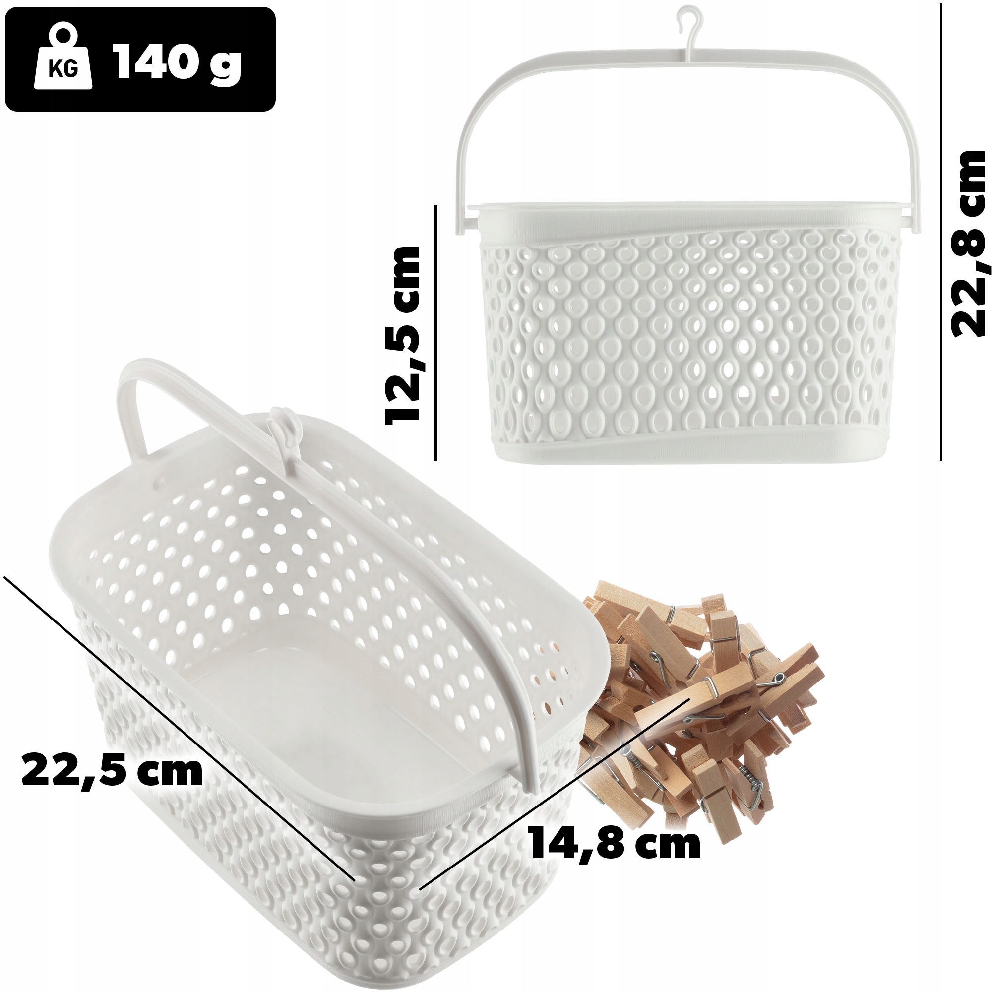 UNIWERSALNY - możliwość łatwego transportu produktu umożliwi Ci maksymalne dostosowanie go do własnych potrzeb. Możesz przechować w nim nie tylko klamerki, ale także wybrane kosmetyki lub nawet nieduże rośliny doniczkowe.