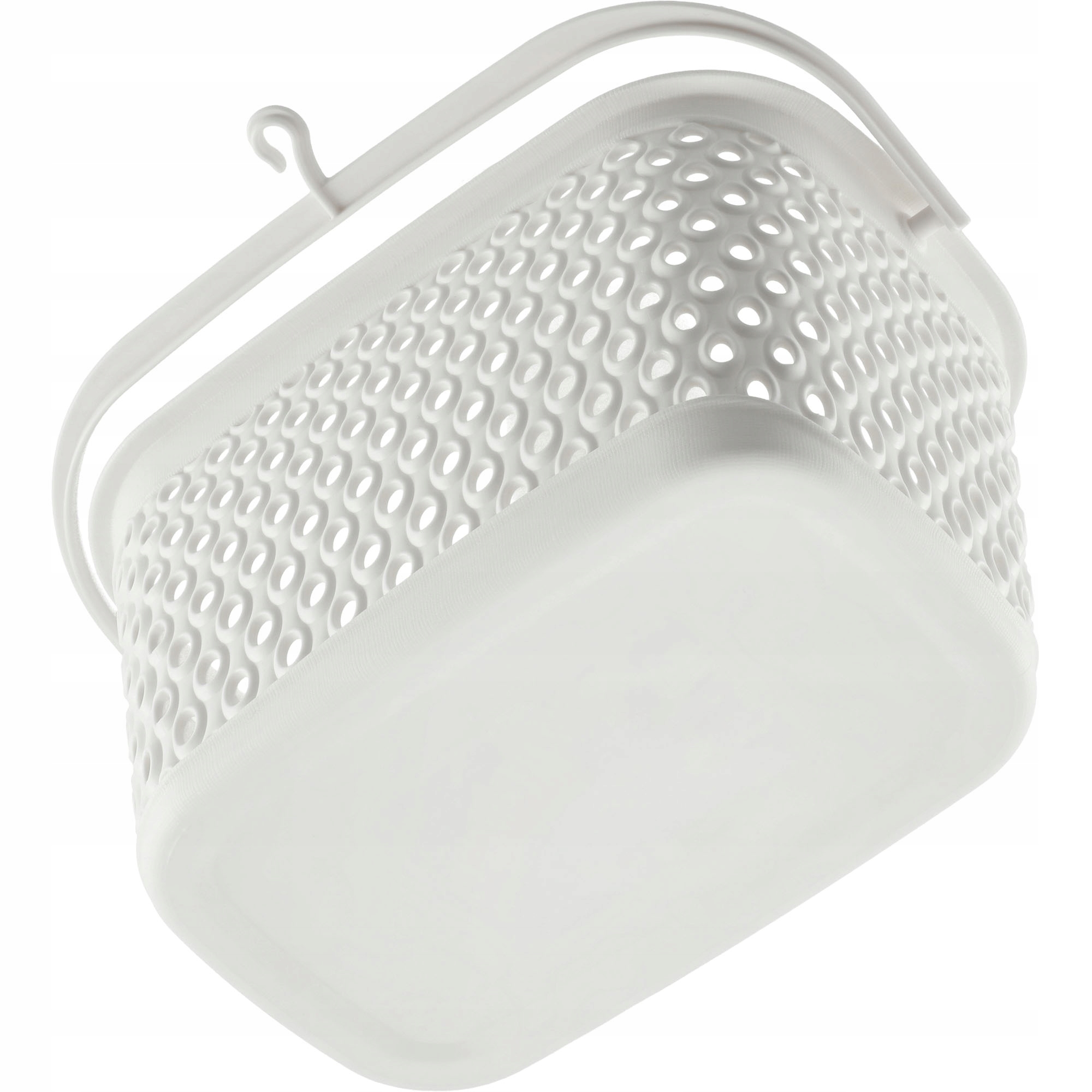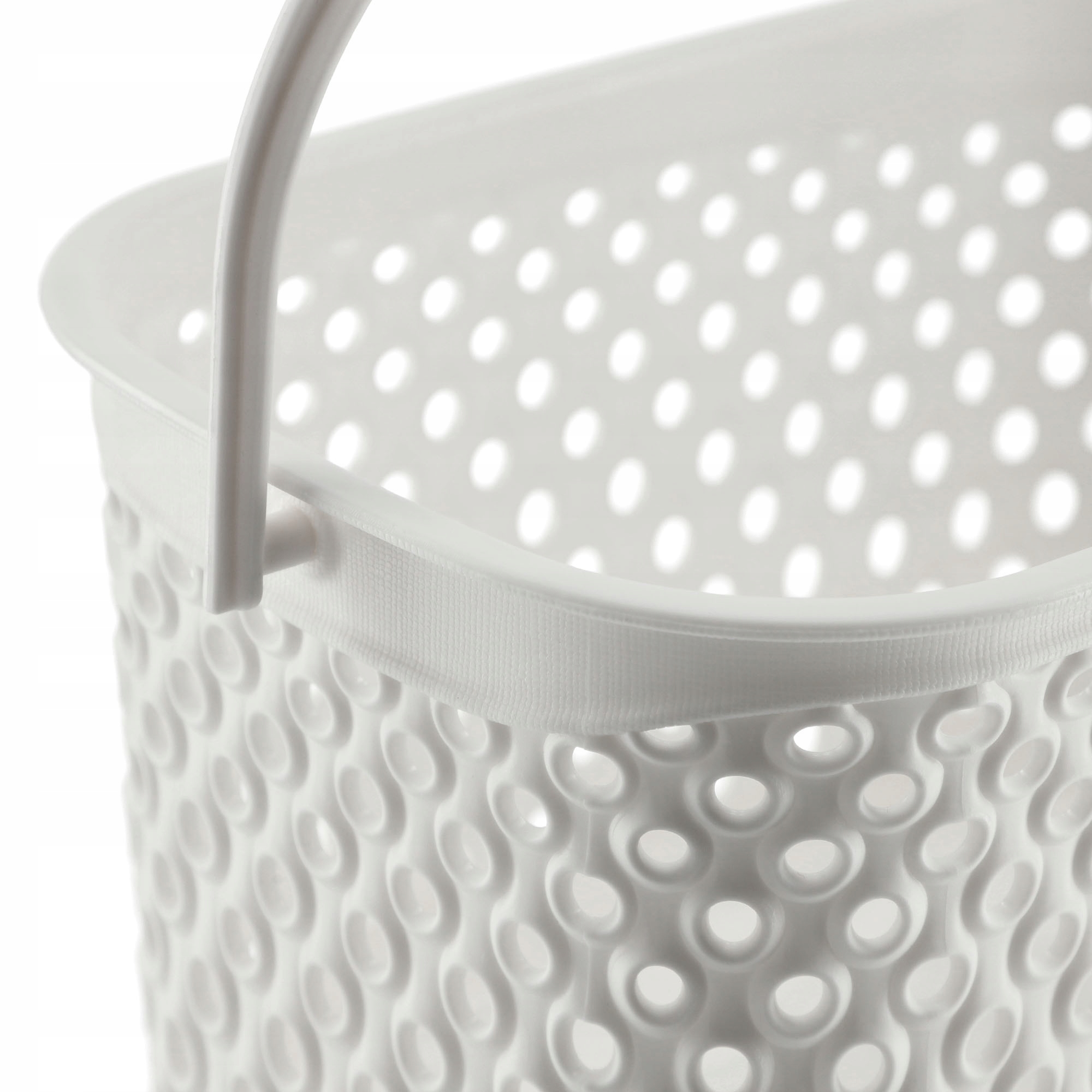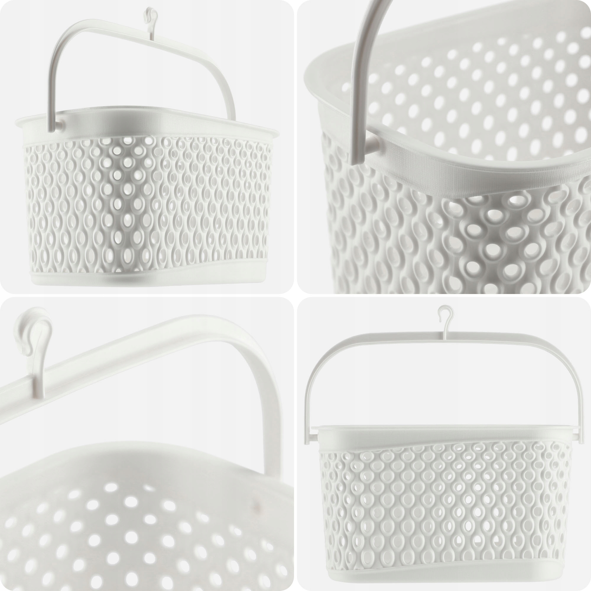 Wykonane z wytrzymałego tworzywa sztucznego akcesorium swoją formą przypomina klasyczny, prostokątny koszyczek, charakteryzuje duża lekkość, a także odporność na uszkodzenia mechaniczne czy kontakt z wodą – produkt sprawdzi się więc do przechowywania zarówno środków higieny i kosmetyków, ale także mniejszych detergentów, żabek do firan lub klamerek do prania.