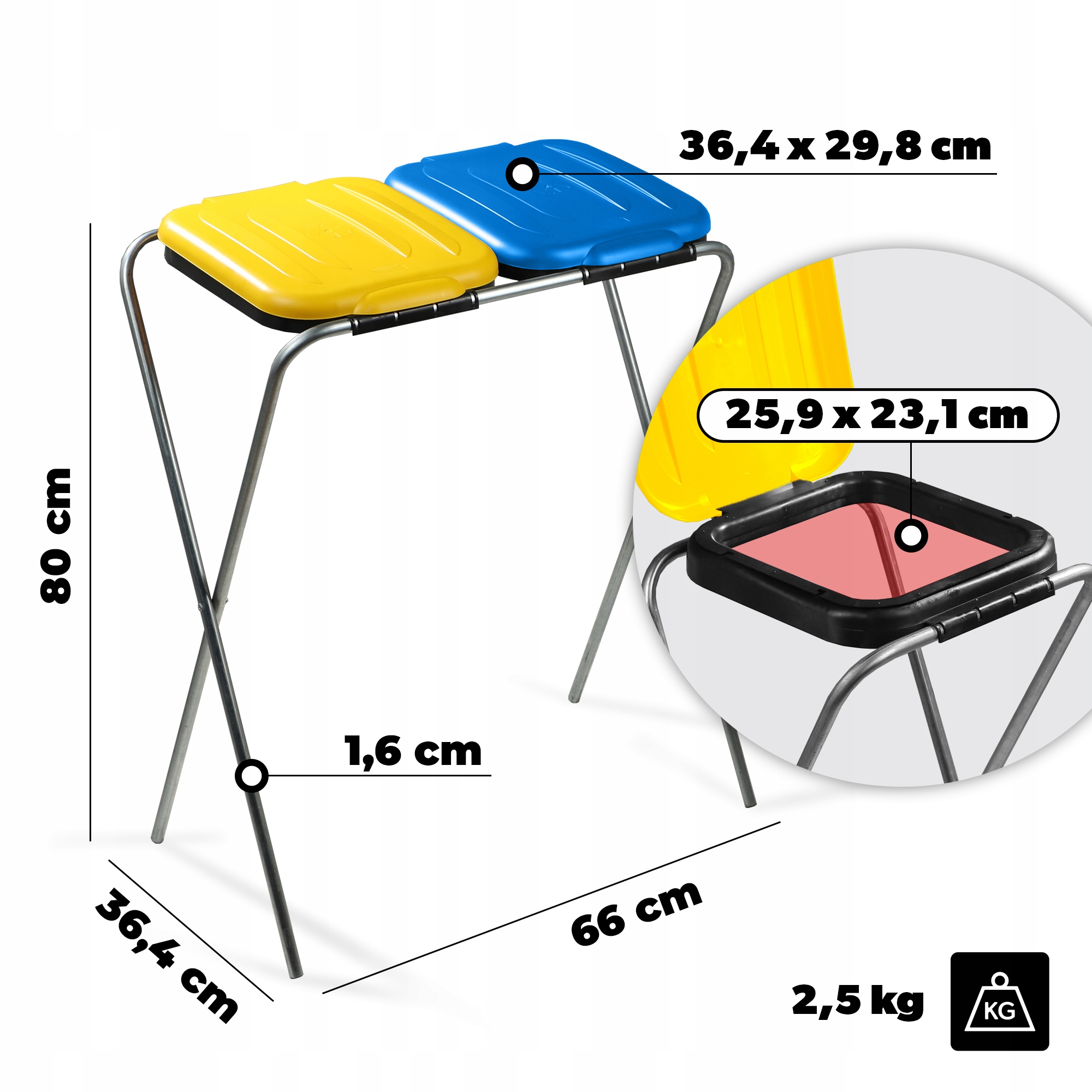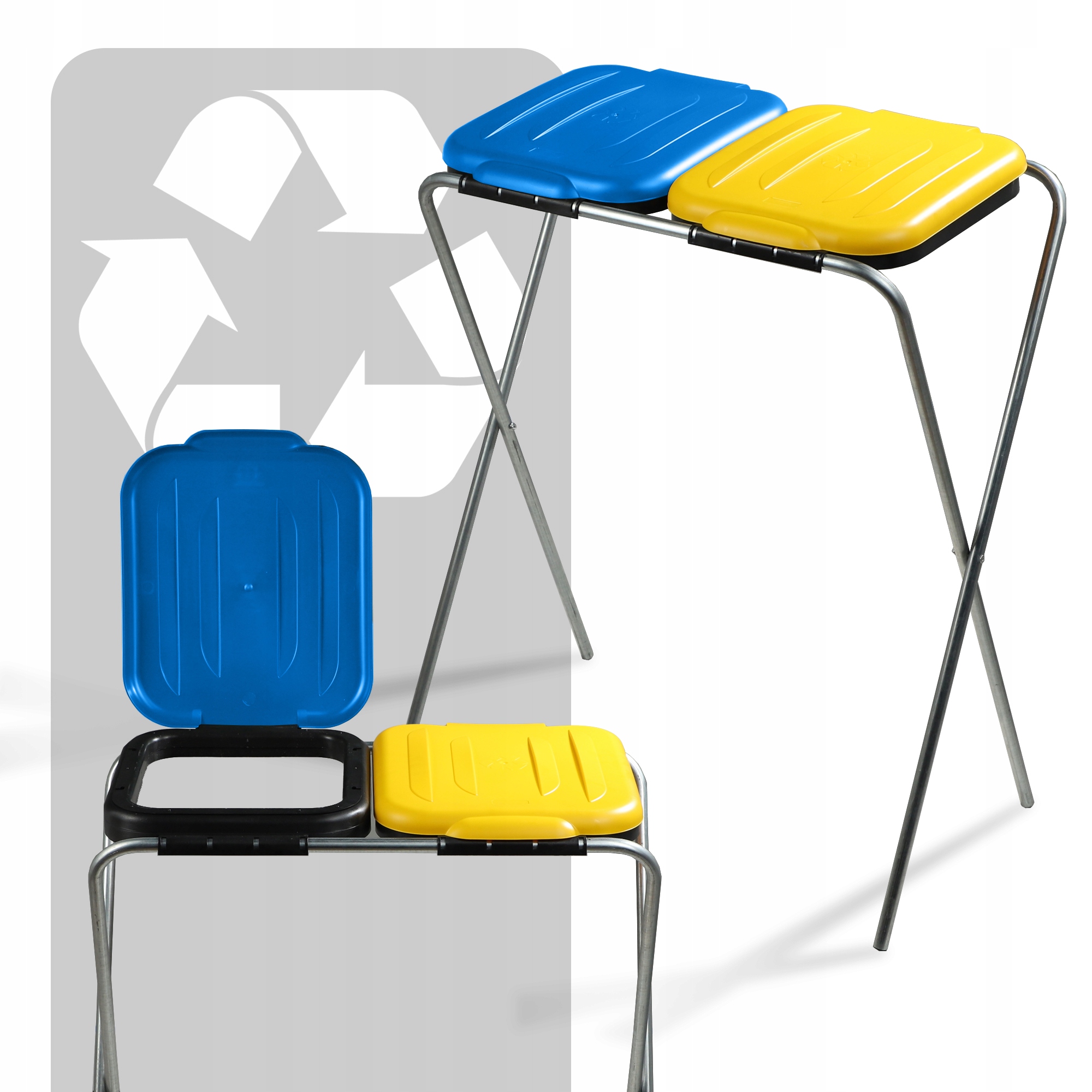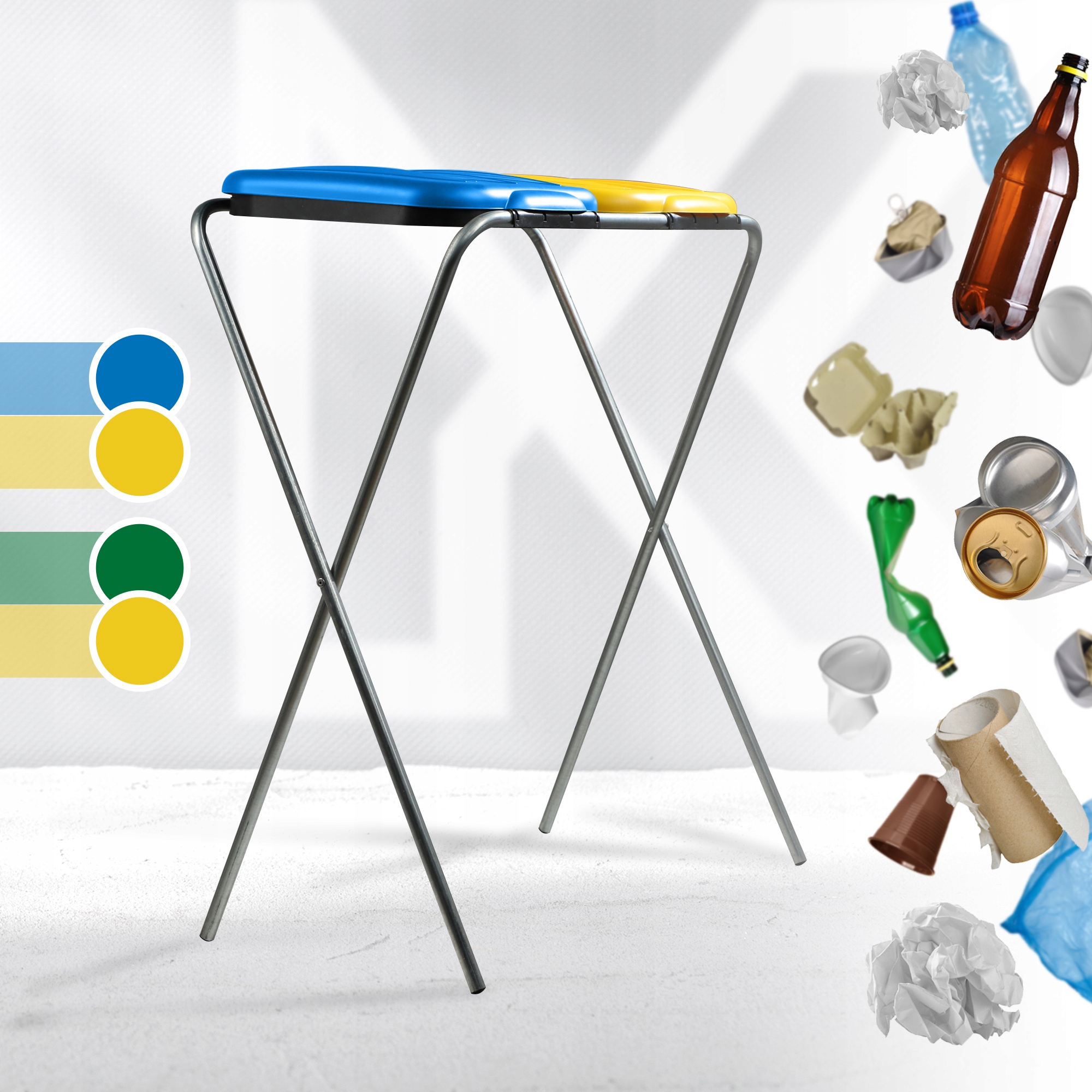 RÓŻNE RODZAJE – w naszej ofercie możesz znaleźć stojak z pokrywami w kolorach odpowiadających poprawnej segregacji. Przygotowaliśmy dwa warianty kolorystyczne: niebiesko-żółty lub żółto-zielony.