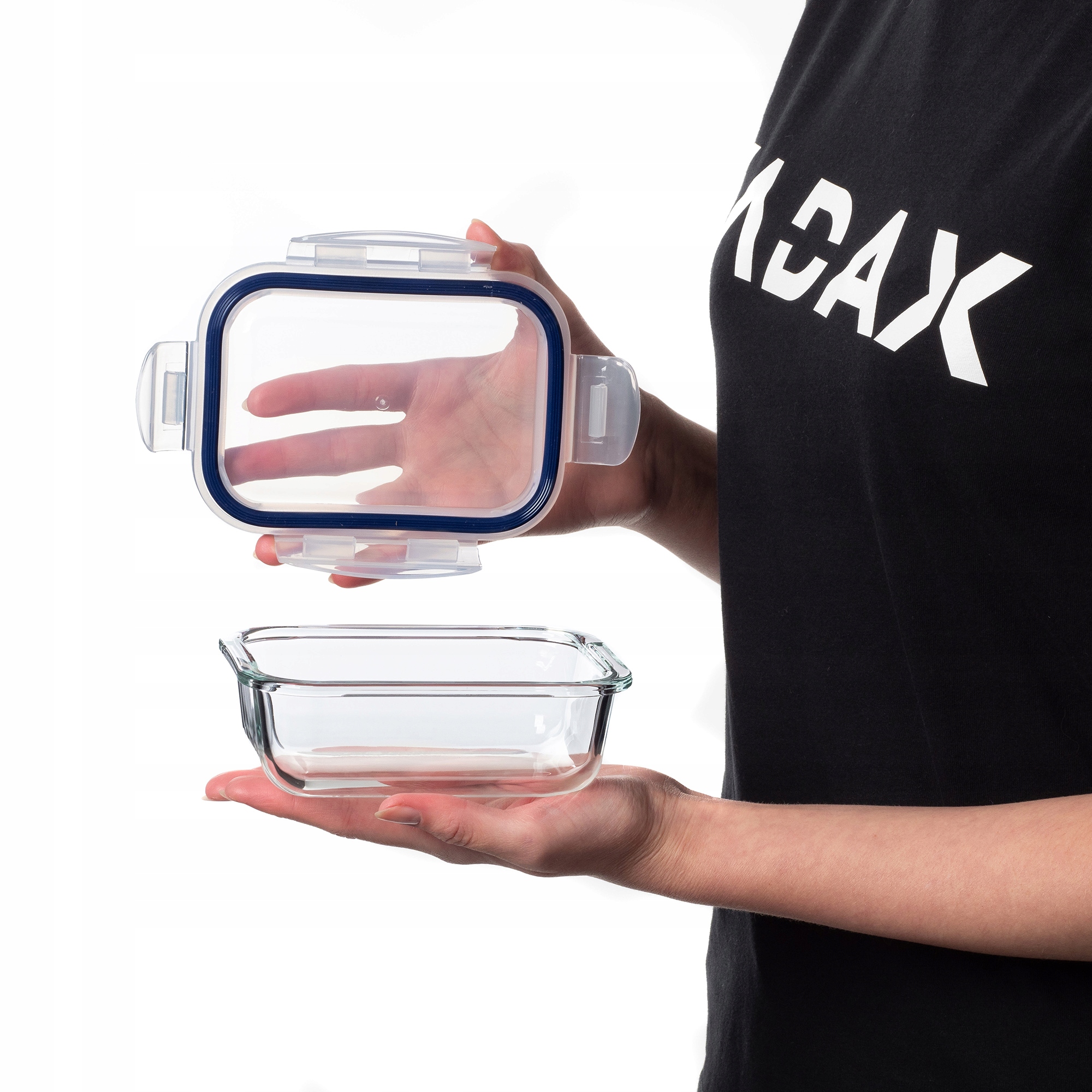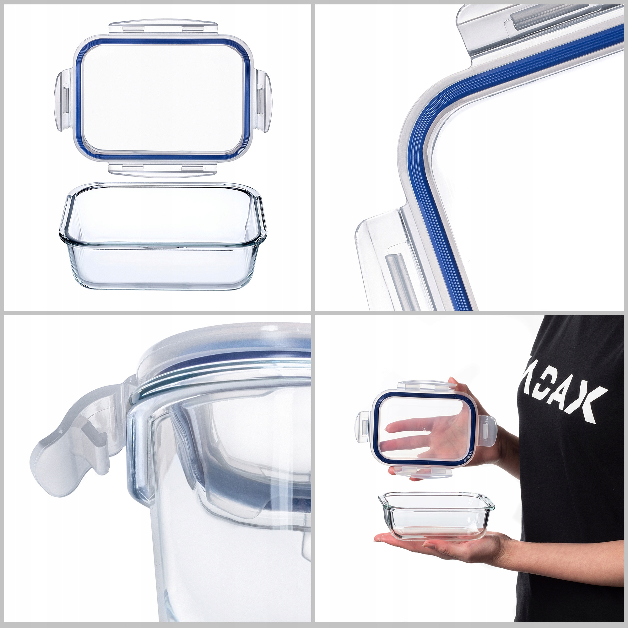 FUNKCJONALNY - szklany pojemnik zapewnia doskonałą izolację, chroniąc jedzenie przed czynnikami zewnętrznymi i bakteriami pomagając zachować świeżość i jakość przechowywanych produktów.