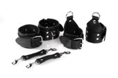 Ten zestaw nie powstał jako adaptacja. Powstał jako odpowiedź. W każdej parze kajdan – zarówno do nadgarstków, jak i do kostek – zastosowano rozwiązania typowe dla sprzętu klasy profesjonalnej. Mocne przeszycia, stalowe okucia, nierozciągliwa skóra – wszystko przetestowane w warunkach ekstremalnych. Tu nie ma miejsca na przypadek. Gdy osoba uległa zostaje zapięta – pozostaje w tej pozycji do momentu decyzji o rozpięciu.