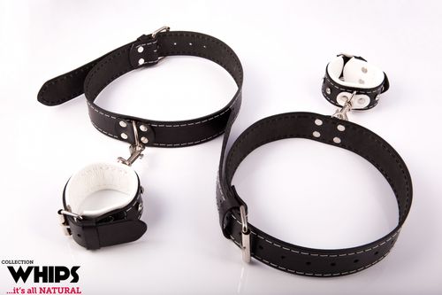 Solidna skórzana uprząż krępująca nadgarstki z udami