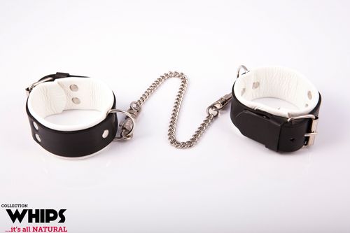 Skórzane kajdanki męskie na ręce w kolorze białym zapinane na masywne klamry