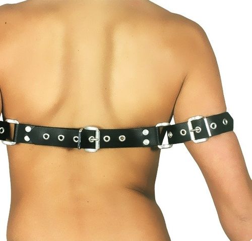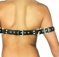 Kajdany w formie pasa z klamrami obejmujące ramiona i plecy zapinane na trzy sprzączki.