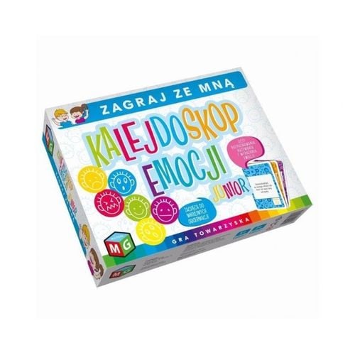 "Kalejdoskop emocji dla najmłodszych" to gra towarzyska w 2 odsłonach polecana starszym przedszkolakom i uczniom klas I -III. Gra posiada dwa warianty rozgrywki, które w przyjemny sposób uczą rozpoznawania i wyrażania emocji oraz zachęcają do wnikliwych obserwacji. " Kalejdoskop emocji" uczy empatii, tolerancji, właściwych relacji interpersonalnych, uwrażliwia na drugiego człowieka. Gra wyzwala pozytywne emocje, pobudza wyobraźnię oraz stymuluje umiejętność myślenia przyczynowo- skutkowego. Uczestnicy zabawy ćwiczą spostrzegawczość, koncentrację uwagi i pamięć. Gra rozwija umiejętności werbalne, a także pomaga w rozumieniu sensu informacji podawanych w formie uproszczonych rysunków, symboli. Zestaw zawiera: karty ze zdarzeniami - 72szt, karty z rysunkami twarzy -36szt, plansze do gry w Bingo -6szt, instrukcję.
