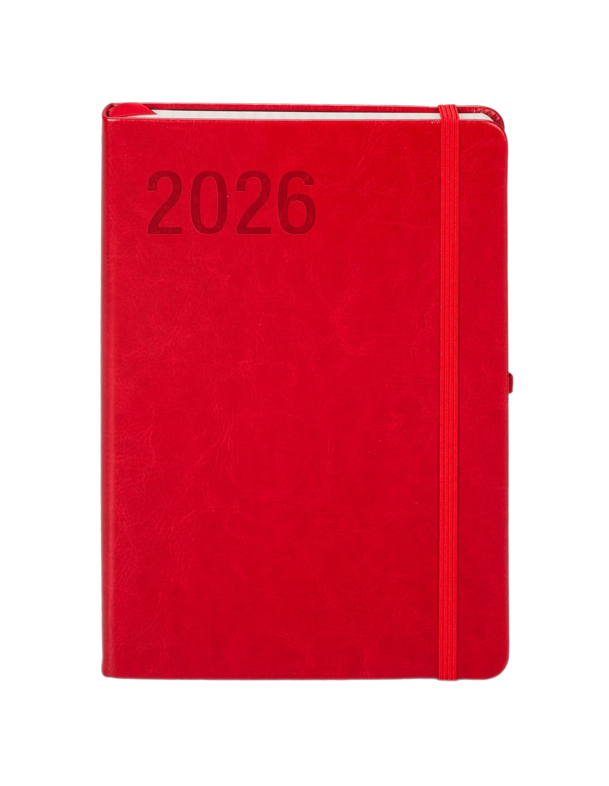 Elegancki kalendarz na rok 2026 z serii Formalizm w formacie A5, stworzony z ekologicznej skóry, posiada praktyczny układ tydzień na stronie i łącznie 176 stron. Dodatkowe funkcje obejmują:
