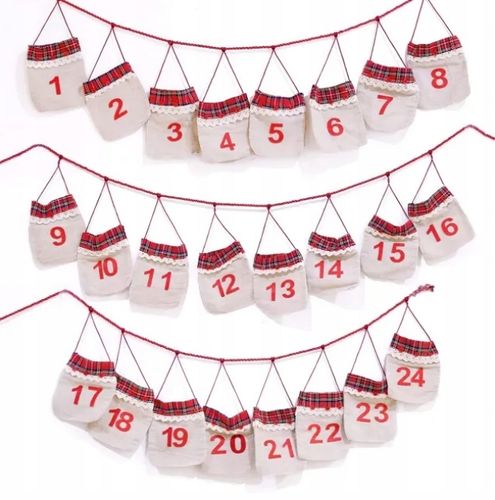 ✔️ Łatwy montaż na sznurku jutowym o długości 3 m, z numerami 1-24 dla precyzyjnego odliczania dni adwentu.