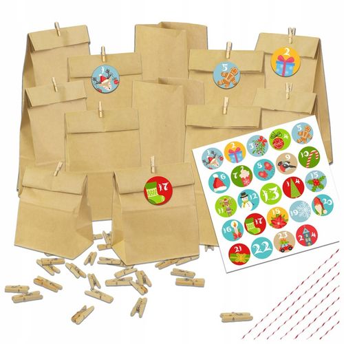 ✔️Kompletny zestaw z 24 torebkami, naklejkami, klamerkami i sznurkiem, zapewniający wysoki poziom kreatywności i odpowiadający na różne pomysły na niespodzianki.