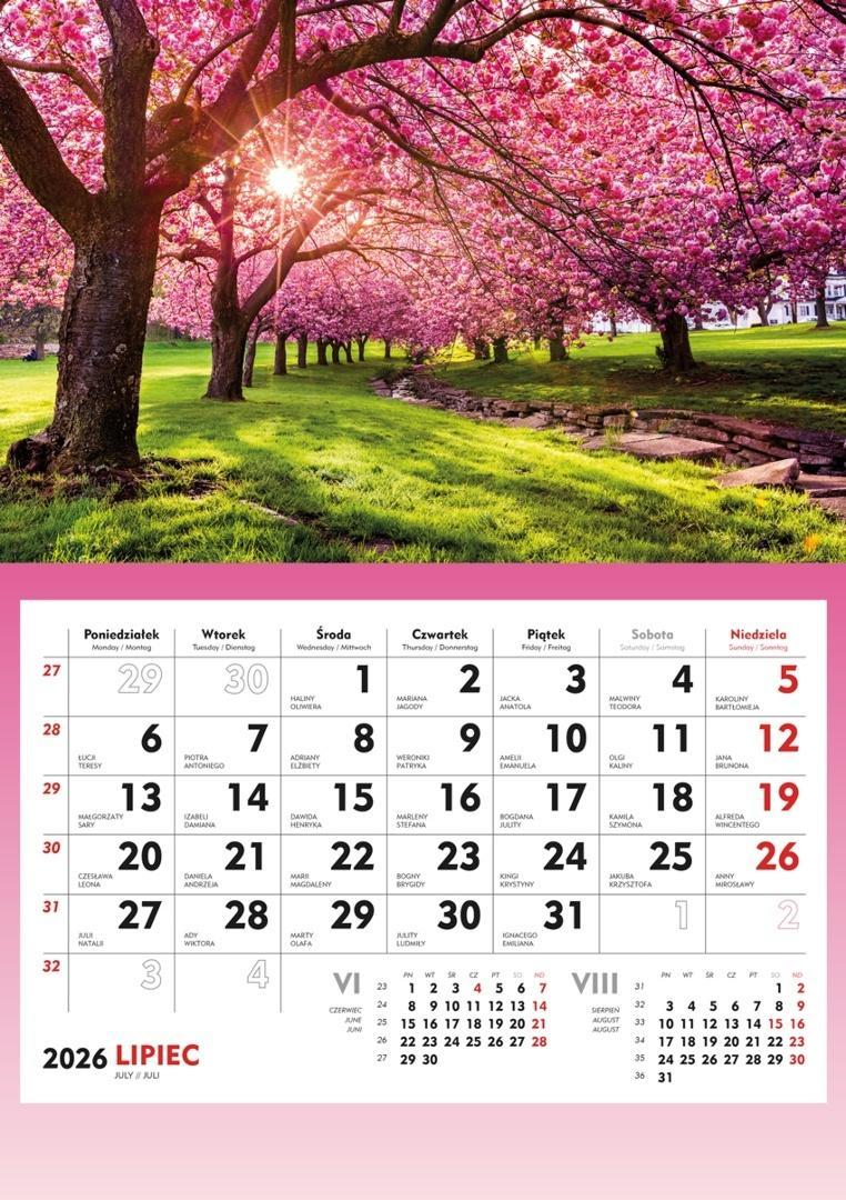 Kalendarz ścienny jednodzielny 2026 "Kwitnące Drzewa" T-107S-3 Michalczyk to elegancki i funkcjonalny dodatek do każdego wnętrza, zapewniający doskonałą organizację czasu dzięki przestronnemu kalendarium. Jego cechy obejmują: