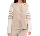 Nasza lekka, bezrękawa kurtka typu sherpa ma elastyczną talię i zapięcie na zatrzaski z przodu, dzięki czemu doskonale nadaje się do noszenia pod ulubioną parką wiosną.
