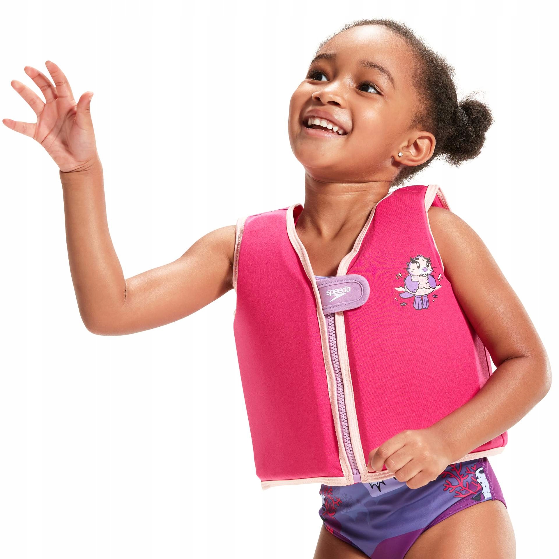 Kamizelka jest jest świetnym rozwiązaniem dla dzieci, które nie czują się pewnie w wodzie i potrzebują wsparcia w procesie oswajania się z wodą.