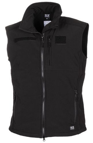 Wojskowa kamizelka z trzema warstwami, czarna, zapinana na suwak.