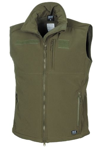 Wojskowa kamizelka z trzema warstwami, oliwkowa, zapinana na suwak.
