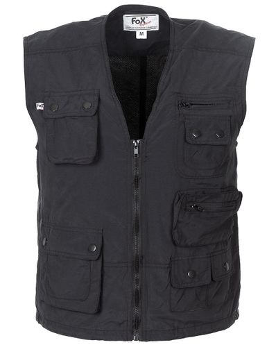 Wojskowa kamizelka z trzema warstwami, czarna, zapinana na suwak.