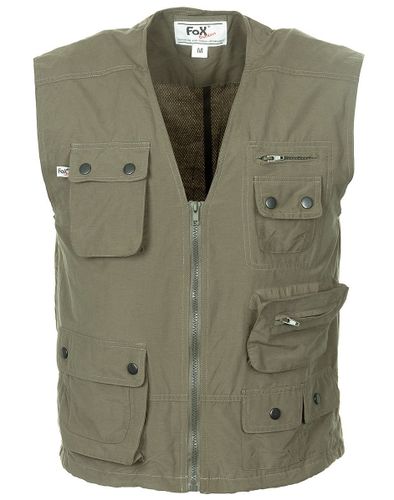 Wojskowa kamizelka z trzema warstwami, oliwkowa, zapinana na suwak.