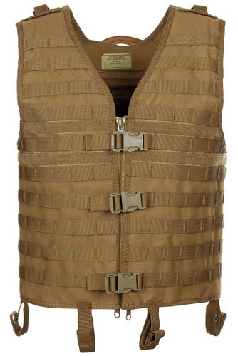 Wojskowa kamizelka taktyczna z systemem modułowym, coyote tan, wykonana z poliestru.