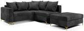 Mebel osadzony jest na złotych, metalowych nogach, które nadają mu lekkości i charakteru. Stylowe wykończenie, wygodne poduchy i łatwe rozkładanie sprawiają, że to narożnik, który nie tylko pięknie wygląda, ale też świetnie się sprawdza na co dzień.