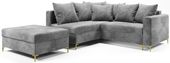 Mebel osadzony jest na złotych, metalowych nogach, które nadają mu lekkości i charakteru. Stylowe wykończenie, wygodne poduchy i łatwe rozkładanie sprawiają, że to narożnik, który nie tylko pięknie wygląda, ale też świetnie się sprawdza na co dzień.