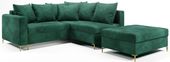 Mebel osadzony jest na złotych, metalowych nogach, które nadają mu lekkości i charakteru. Stylowe wykończenie, wygodne poduchy i łatwe rozkładanie sprawiają, że to narożnik, który nie tylko pięknie wygląda, ale też świetnie się sprawdza na co dzień.