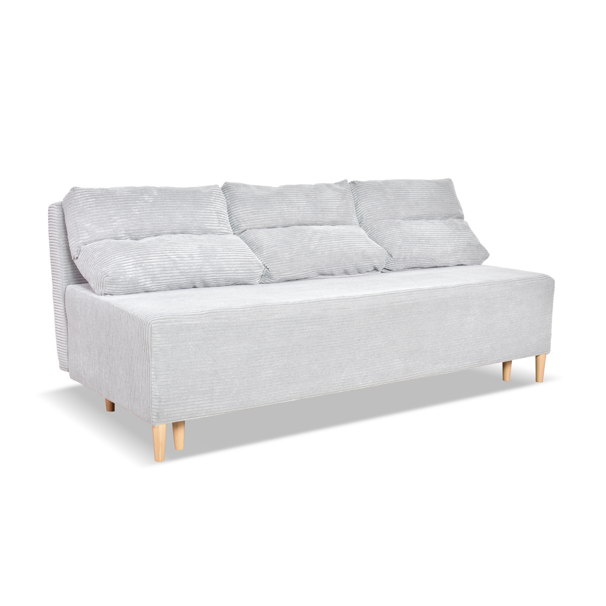 Zastosowana tkanina ANAFI – jasnoszary, delikatnie połyskujący sztruks – łączy elegancję z funkcjonalnością. Charakterystyczne, gęste prążki dodają kanapie unikalnego stylu i doskonale maskują drobne zabrudzenia.