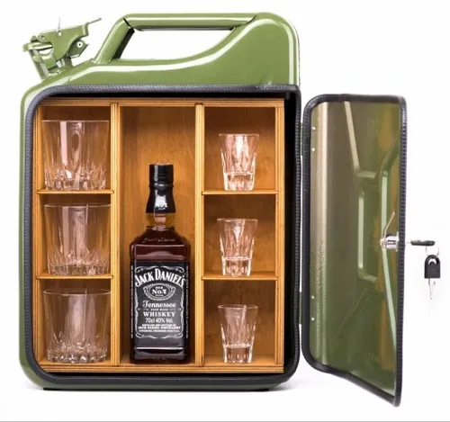Odkryj wyjątkowy barek w formie 20-litrowego kanistra, który łączy w sobie funkcjonalność i oryginalność. Ten innowacyjny design nie tylko zachwyca swoim wyglądem, ale przede wszystkim oferuje praktyczne rozwiązania do przechowywania ulubionych trunków. A teraz zyskujesz dodatkowy komplet trzech szklanek do whisky o wartości 19 zł, które idealnie dopełnią całość, czyniąc z niego niezwykły prezent dla bliskiej osoby.