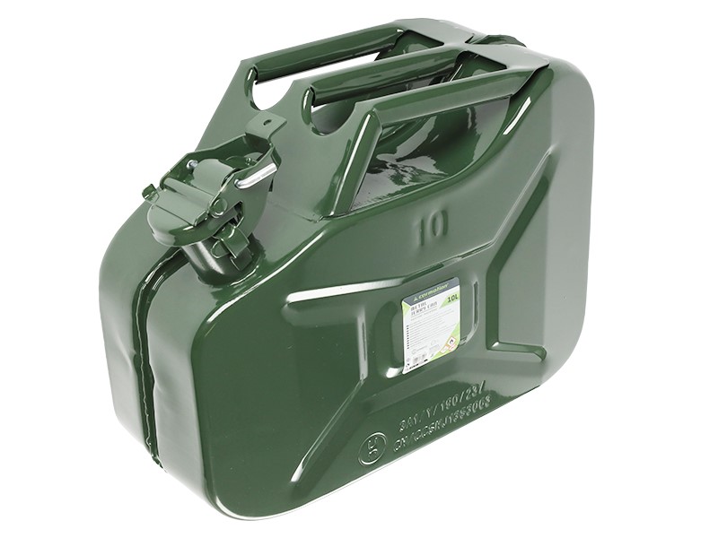 Kanister metalowy na paliwo, 10L to doskonały wybór dla każdego, kto potrzebuje solidnego i bezpiecznego sposobu na przechowywanie paliwa. Wykonany z malowanej proszkowo blachy metalowej, nasz kanister zapewnia wyjątkową trwałość oraz odporność na korozję, co sprawia, że jest idealnym towarzyszem dla Twojej kosiarki, piły spalinowej czy odśnieżarki.