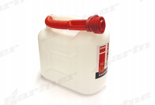 Najwyższej jakości kanister 5L z lejkiem do przechowywania paliwa oraz oleju.