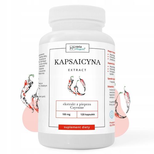 Suplement diety "KAPSAICYNA EXTRACT" marki Hela Pharm to produkt najwyższej jakości, który wspomaga proces odchudzania i kontroli wagi. Zawierający 10 mg kapsaicyny z ekstraktu z pieprzu Cayenne, skutecznie przyspiesza metabolizm i spalanie tkanki tłuszczowej.
