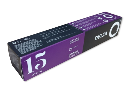 Kapsułki Delta Q MythiQ (15) to kapsułki z najbardziej intensywną mieszanką palonej, mielonej kawy do ekspresów Delta. Mieszanka kawy z najlepszych ziaren z Angoli i Kamerunu, zapewni espresso o bogatym i pełnym smaku, które będzie intensywne z wyjątkową głębią aromatu, wyróżniającą się nutami czekolady, prażonych orzechów, kakao i malin dzięki czemu tworzą niezapomniane doznania smakowe. Opakowanie zawiera 10 kapsułek z kawą paloną mieloną pasujących do wszystkich ekspresów marki Delta Q.