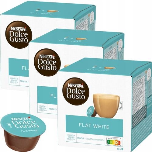 Kapsułki Nescafe Dolce Gusto Flat White - 48 kaw to idealny wybór dla każdego miłośnika kawy, który pragnie cieszyć się wyjątkowym smakiem i aromatem w komfortowych warunkach domowych. Dzięki hermetycznie zamkniętym kapsułkom, każdy łyk tej doskonałej kawy zachwyciTwoje zmysły i sprawi, że poczujesz się, jakbyś właśnie delektował się filiżanką w najlepszej kawiarni.