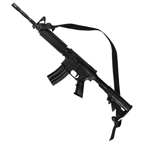 Karabin gumowy do treningu samoobrony i obezwładniania napastnika. Atrapa amerykańskiego karabinka M16, wersja długa z rozłożoną kolbą z odwzorowaniem oryginału z bardzo realistycznymi detalami Ma zamontowany pasek i możliwość zamontowania bagnetu z tworzywa sztucznego, dostępnego w naszej ofercie. Karabin wykonany jest z termoplastycznej gumy TPR - jest to materiał, który posiada zarówno cechy gumy i tworzyw sztucznych, jest elastyczny ale bardziej sztywny niż guma. Długość 86 cm Wykokosić wraz magazynkiem 21 cm Szerokość szyny ris - 22 mm Waga około: 1,7 kg