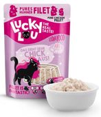 Koty, lubią być rozpieszczane. Też lubisz od czasu do czasu prawdziwą ucztę, prawda? Dokładnie tak samo jest z kotami. Kochają dodatki! I dlatego do linii karm mokrych dodaliśmy Lucky Lou Extra Food. To soczysty filet przygotowany w galarecie lub w bulionie. To jest ekstra pyszne!