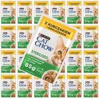 Purina Cat Chow Sterilised z kurczakiem i bakłażanem w sosie to pełnoporcjowa karma mokra opracowana z myślą o dorosłych kotach po zabiegu sterylizacji lub kastracji.
