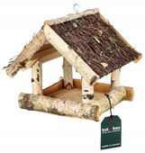 Wykonany z odpornego na wilgoć, mróz i promienie słoneczne drewna brzozowego, karmnik zachowuje swój naturalny wygląd i wytrzymałość przez wiele sezonów. Odkryte boki umożliwiają swobodne przelatywanie sikorek, gili i kawek, tworząc przestrzeń, w której ptaki czują się pewnie i bezpiecznie, bez ryzyka ataku drapieżników.