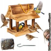 Wszystko to uzupełnia praktyczność i kompletność zestawu. Do karmnika dołączamy wkręt do drewna do zawieszenia oraz paczkę wysokiej jakości ziarna (nasiona słonecznika, proso, siemię lniane i orzechy), co czyni go gotowym do natychmiastowego użycia. To więcej niż karmnik – to klucz do Twojego ekologicznego świata, dostosowany do naturalnych potrzeb ptaków i Twoich oczekiwań.
